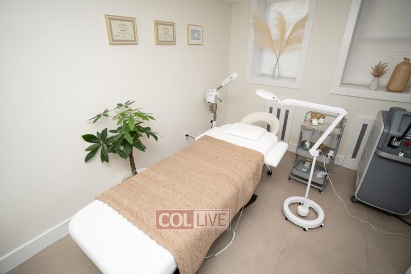 The walls are washed in a relaxing shade of white. Soft music permeates the studio as a delicate lavender aroma immediately calms the senses. Wooden vases and pampas grass adorn the stately windows. A tranquil hush falls over Maayan Skin and Laser Spa. It is an island of calm.